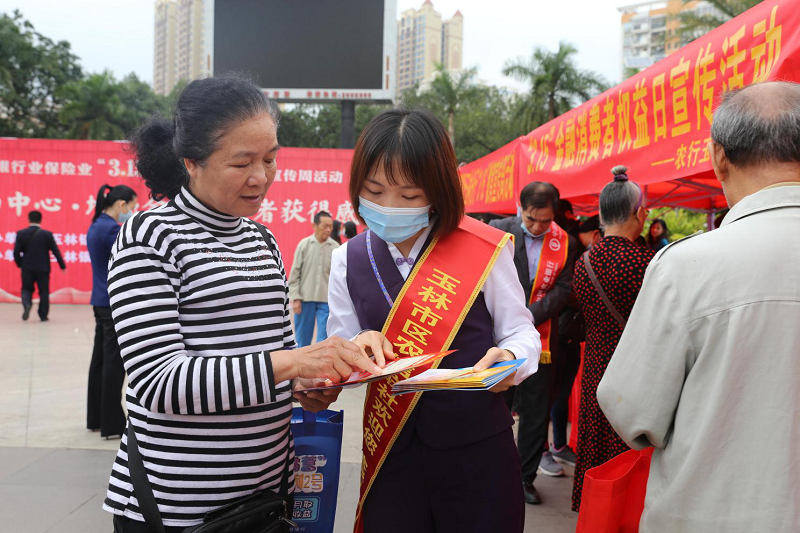 3月15日上午,玉林银行业保险业“3·15”消费者权益保护教育宣传周在玉林城区文化广场拉开帷幕。活动由玉林银保监分局、玉林银行业协会、保险行业协会联合举办,10家银行机构、31家保险机构围绕今年活动的主题“以人民为中心,增强金融消费者获得感”,聚焦“一老一少”等重点人群,深入群众开展了宣传教育。