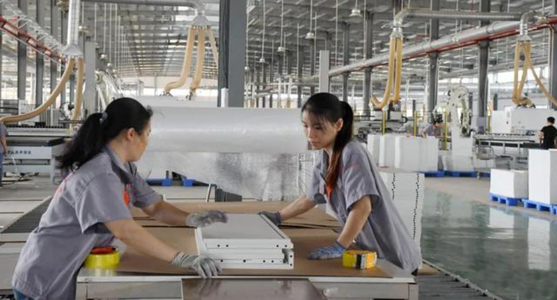 ▲龙赞东盟国际林业循环经济产业园内,生产车间里一派热火朝天的工作景象。