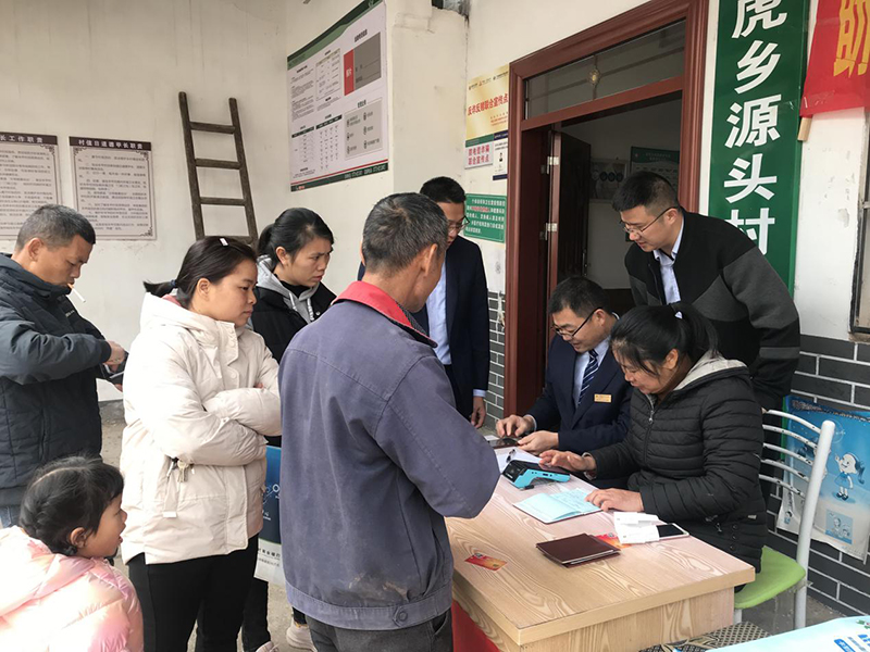 村民们在恭城农商行金融便民服务点体验办理银行卡取现、缴医保业务