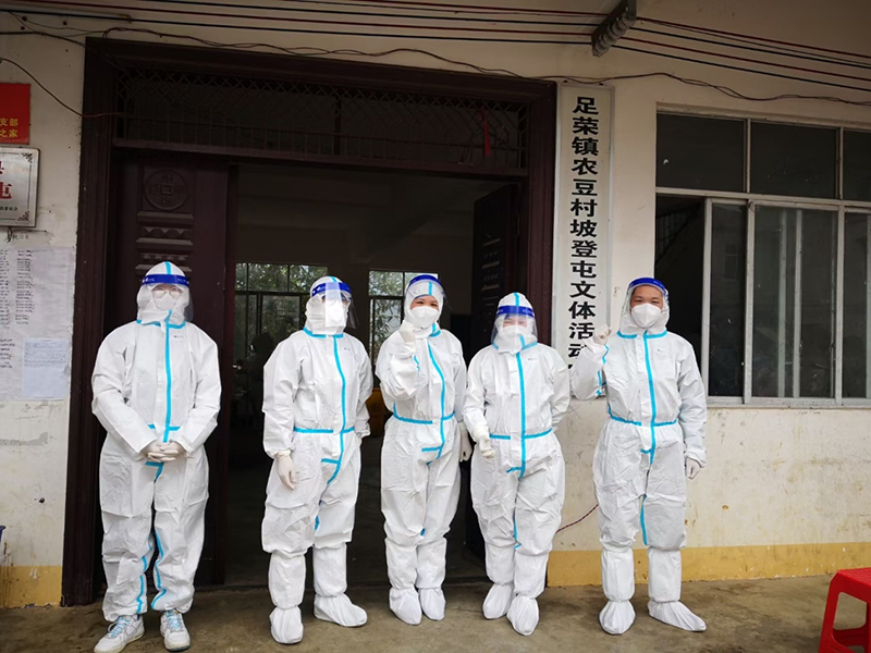 德保县足荣镇农豆村坡登屯是广西百色市德保县的一个小村庄,是黄玉葵的家乡。面对越来越严峻的疫情形势,她毅然地参加了坡登屯志愿者服务的队伍,并服从镇防疫指挥部安排,协助坡登屯开展好防疫抗疫工作。她穿上厚厚的防护服、带上手套和面罩,化身最美“逆行者”,守在广场上的核酸检测点,协助医护人员维持核酸检测秩序。“大爷,我来教您用手机扫码登记信息做核酸检测”,“大姐,做完核酸检测请立即回家等待结果,避免在外停留”一声声嘱托和一句句问候都来自于她的真切关心。广场上,她忙碌的身影是抗疫队伍中一道靓丽的“风景线”。“为了节约时间和避免防护服被浪费,我连续四五个小时不敢喝水和上厕所。”深夜终于回到家中的黄玉葵说道,“我第一次穿上防护服,感到责任重大,深刻体会到医护人员不分昼夜工作的辛苦,我的家乡‘生病了’,这次换我保护他!”