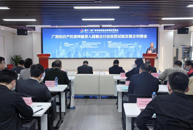 (图为广西知识产权质押融资入园惠企行动自贸试验区银企对接会现场)