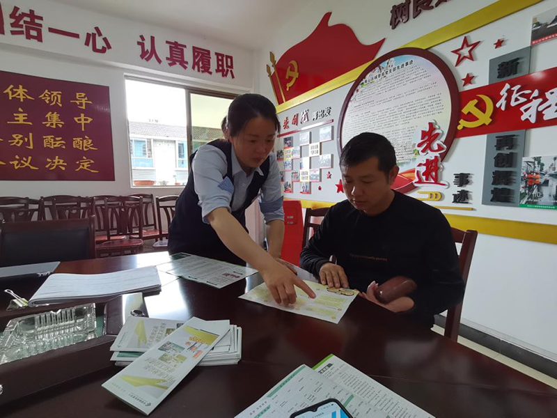 (图为中国邮政储蓄银行桂林科技支行为科技型小微企业介绍金融产品)