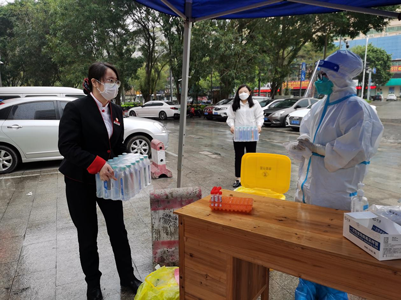 疫情发生以来,中信银行钦州分行大力弘扬“奉献、友爱、互助、进步”的志愿精神,履行中信银行的为社会尽责任的使命。自发对接网格核酸检测点,了解疫情防控工作实际需求,提供防疫检测点医护人员及志愿者休息场所及所需的矿泉水、午餐等物资,体现了中信银行钦州分行服务社会的温度。