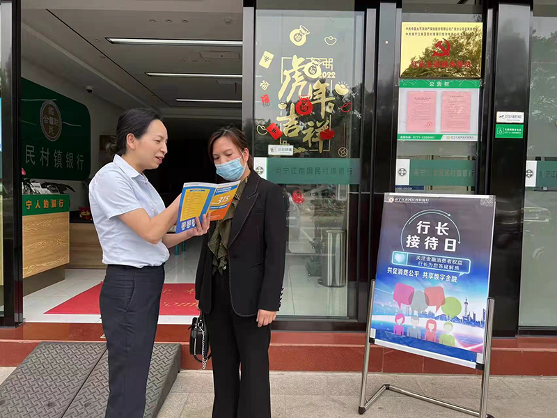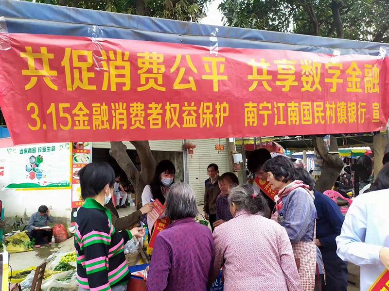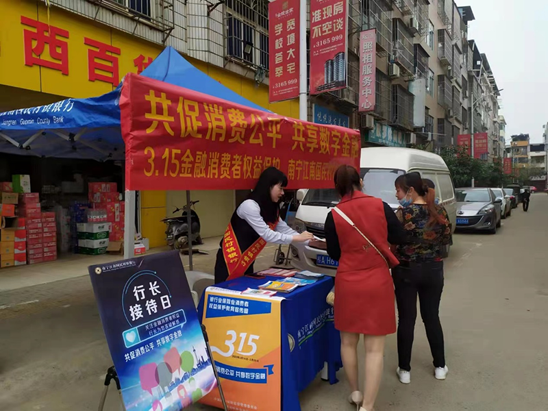 为把消费者权益保护工作落到实处,南宁江南国民村镇银行结合“3•15教育宣传周”活动要求,在辖内10家营业网点开展了“消费者权益行长接待日”系列活动,由各网点负责人担任“金融知识宣传员”,采取“走出去”和“请进来”相结合的方式,与消费者面对面,普及金融知识,倾听消费者诉求,切实解决消费者需求。
