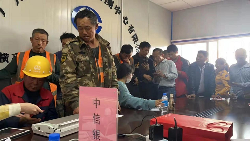 中信银行南宁分行前往建筑服务类小微企业驻地为农民工办理上门开户业务。