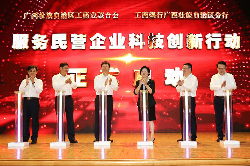 图为自治区工商联与工行广西分行服务民营企业科技创新行动启动仪式现场。