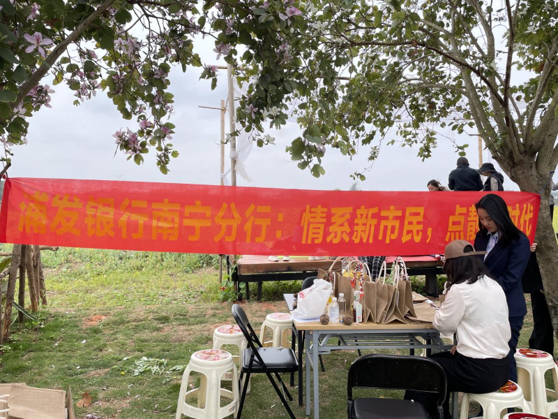 2023年3月6日、7日,浦发银行南宁分行携手广西南南铝加工企业在顶蛳山公园露营地开展了以“情系新市民·点靓她时代”为主题的“三·八”节活动,通过手工DIY、抽奖赢好礼等趣味实在的互动,为女性新市民群体带来了个人养老金、浦发银行信用卡等金融服务和产品,同时还宣传了反诈防骗等金融知识,传递金融温度,护航新市民美好生活。