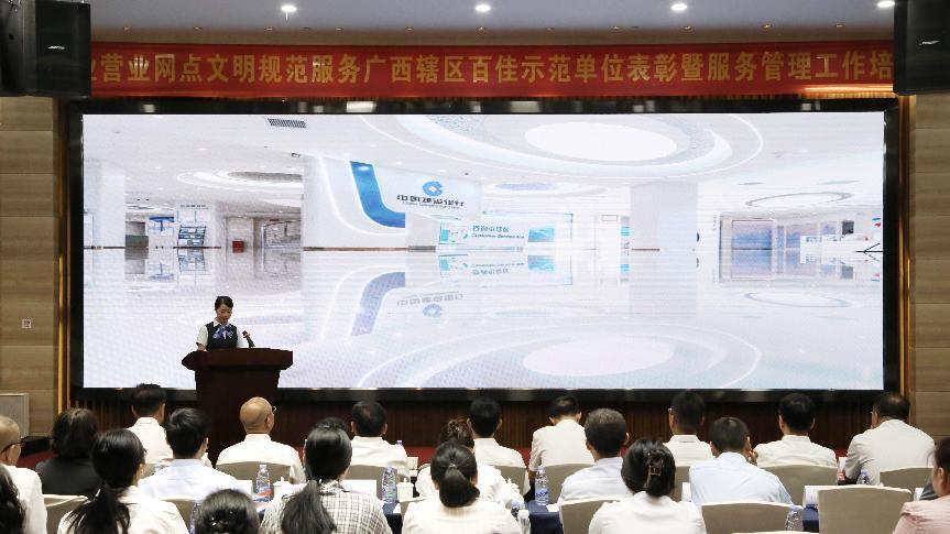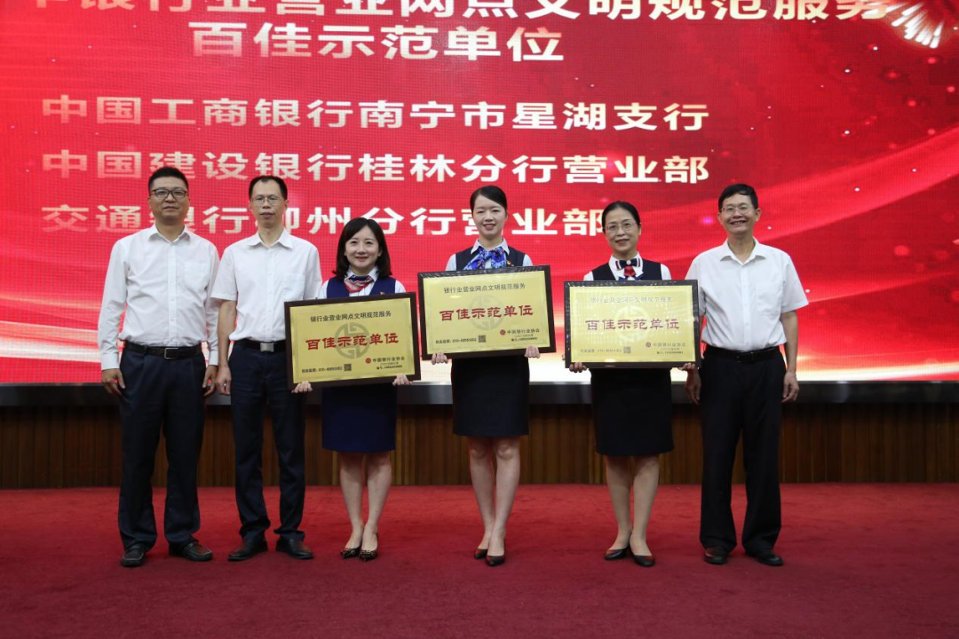 其次,工商银行南宁市星湖支行、建设银行桂林分行营业部、交通银行柳州分行营业部3家全国百佳示范单位代表分别分享了他们在银行业营业网点文明规范服务百佳示范单位创建工作中的经验与体会,展示了他们以“百佳”创建为目标,坚持党建引领发展,主动践行责任担当,积极打造特色品牌,扎实做好金融服务工作的各项努力,充分诠释了银行优质高效服务的真谛。