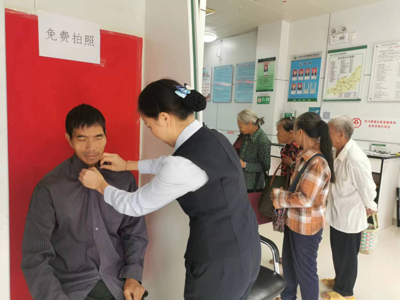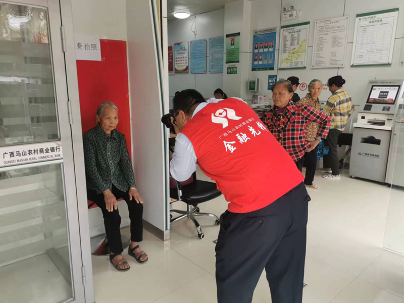 广西马山县永州镇上的老人们,这两天纷纷前往当地农商银行拍起了证件照……