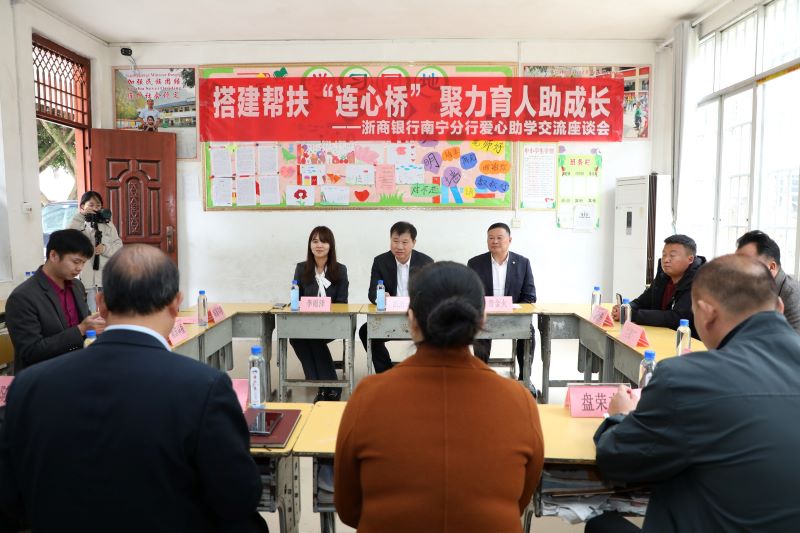 当天下午,浙商银行南宁分行与凌云县教育局、弄谷小学师生及家长代表座谈,倾听各方心声和建议,结合实际持续优化结对帮扶计划。该行介绍了浙商银行“一行一校”公益助学背景、分行结对帮扶推进落实情况以及下阶段帮扶重点举措,教师、学生、家长代表交流了各自的工作、学习和生活情况,并向浙商银行南宁分行给予的结对帮扶表示感谢。