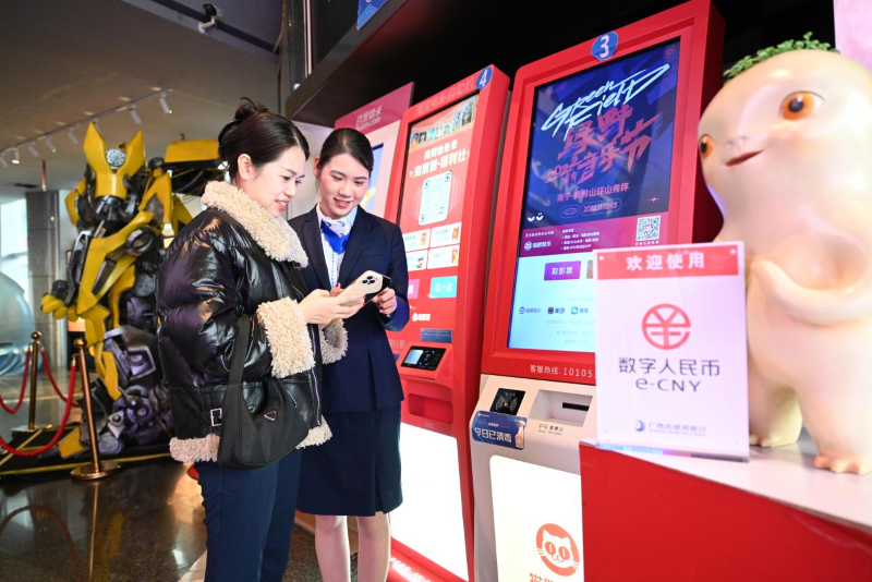 图为市民通过广西北部湾银行手机银行体验数字人民币购买电影票