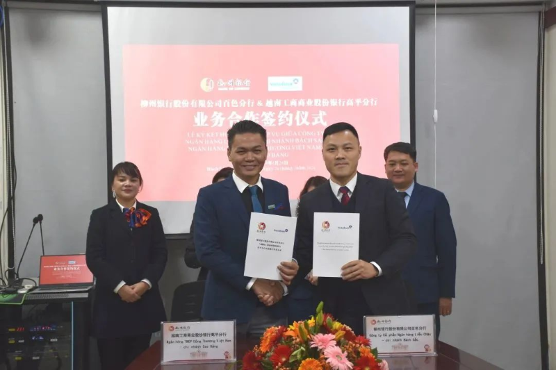 1月26日,柳州银行百色分行与越南工商商业股份银行高平分行举行业务合作签署仪式,标志着柳州银行百色分行与越南工商商业股份银行高平分行的合作开启了新篇章。