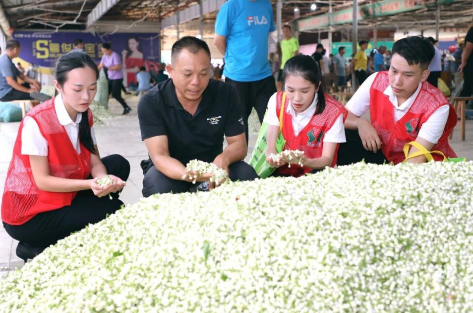 “好一朵美丽茉莉花,芬芳美丽满枝芽,又白又香人人夸”,世界每十朵茉莉花,就有六朵出自横州。在横州,茉莉花被称为“致富之花”,已然成为当地推动乡村振兴的支柱产业之一,从横州飘香世界。