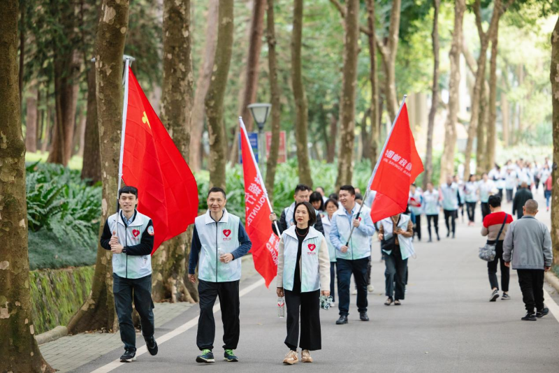 3月20日上午,该行在南宁市人民公园开展了“邮爱公益”健步走活动,85名工作人员统一穿着“邮爱公益”LOGO的马甲、佩戴胸贴,以健步走的形式向过往市民发放宣传单,介绍邮爱公益理念和公益基金捐助活动,呼吁更多的社会爱心人士通过捐赠微信步数等形式参加到活动中来。