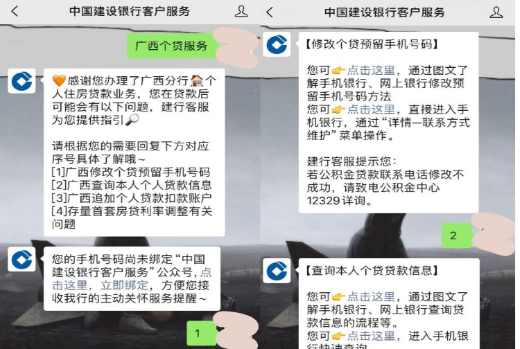 随着客户基础加速扩大和金融行业的数字化转型,建行广西区分行积极聚焦解决客户全方位获取金融服务的共性问题,不断拓宽个人贷款服务渠道,于2023年在中国建设银行客户服务公众号增设广西个贷对客板块,客户通过关键字可快速索引广西个贷业务操作指南,如《如何查询名下个人住房贷款信息》《如何修改个人住房贷款手机号码》《如何追加名下个人贷款的扣款账户》等内容。建行广西区分行从个人贷款客户全过程体验的堵点、痛点出发,根据客户业务办理、关系维护、贷后管理各方面的需求与侧重,持续丰富线上服务渠道功能。