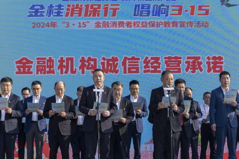 活动中,该行行长作为广西银行业协会会长,与广西保险业协会副会长共同领读《广西银行业保险业诚信经营承诺书》,向社会和消费者作出诚实守信、以义取利、稳健审慎、守正创新、依法合规的庄严承诺。当天,中国银行广西区分行在活动现场精心布置展位,开设了金融知识小课堂,现场讲解金融消费者八项权益、个人征信管理知识等;通过“集邮盖章”“金融权益连连看”“依法维权飞行棋”“信用大投篮”等多个游戏项目,以寓教于乐的活动形式吸引广大市民参与消费者权益宣传活动;原创情景剧《守护钱袋子谨防养老诈骗》采用生动的舞台表现形式与现场观众互动,传播金融正能量,赢得现场观众掌声连连。