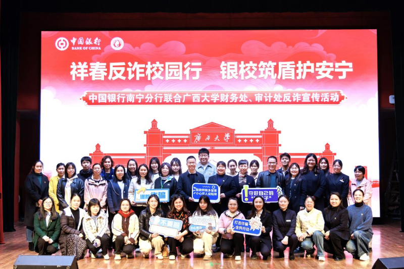 南宁分行联合广西大学举办“祥春反诈校园行,银校筑盾护安宁”反诈宣传活动,为到场教职工及退休人员开展金融知识宣讲,通过真实案例解析,深入浅出地讲解常见电信诈骗类型。活动现场还设置新春游园会,融入猜灯谜、丢沙包、投壶等趣味活动,并巧妙结合反诈知识与权益活动,如消费者权益保障知识宣传、第三代社保卡办理服务、个人养老金制度科普等,吸引百余名师生参与,有效增强师生自我保护意识与识骗防骗能力,为营造安全和谐校园环境筑牢根基 。
