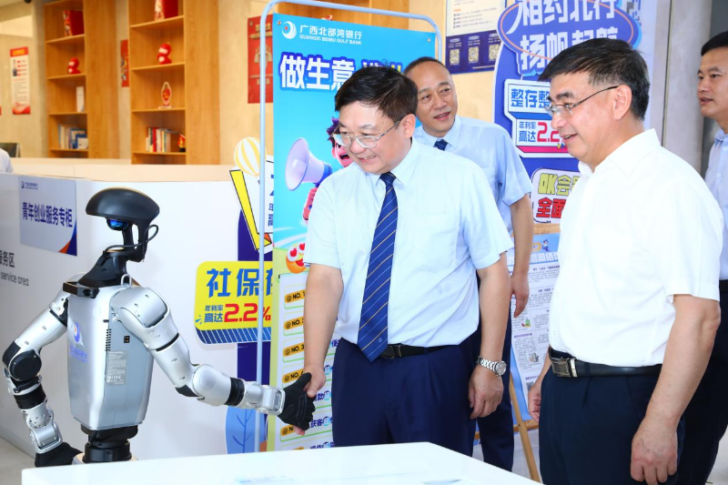期间,出席嘉宾还一同参观了广西北部湾银行科技特色支行,深入了解北行服务实体经济成效、金融数智发展情况以及相关科技金融产品等。