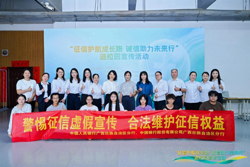 为普及征信知识,进一步推动校园诚信文化建设,切实提升青年大学生的信用意识和风险防范能力,在“6.14信用记录关爱日”到来之际,6月11日,中国银行广西区分行联合中国人民银行广西壮族自治区分行走进广西艺术学院相思湖校区开展“征信护航成长路 诚信助力未来行”主题宣传活动。本次活动由中国银行南宁分行承办,现场各单位工作人员、在校师生近200余人到场参加。