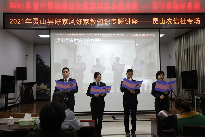 评选“最美农信家属”,关爱员工身心健康。发现身边“最美”人物,树立“最美”典型,灵山联社开展“最美农信家属”评选活动。通过民主推荐和广泛征求意见,从选送的23名员工模范家属中评出6名“最美农信家属”,充分发挥先进典型示范引领作用,发扬民族传统家庭美德,大力营造浓厚家风文化氛围。同时,以第111个“三八”国际妇女节为契机,携手县妇联联合开展“培育良好家风 共享幸福生活”好家风好家教专题知识讲座,为广大女性员工传授家风家教涵养智慧,增强广大职工对家庭教育的责任意识,不断提高女职工的家庭教育和健康管理水平,促进员工家庭幸福安康。