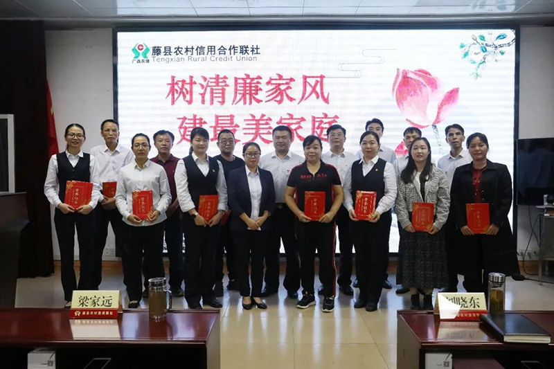 “优秀家庭助廉员”督守清廉。藤县联社开展评选“勤廉标兵”活动,从33个代表中评出8个“勤廉标兵”,授予8个“勤廉标兵”的家属为“优秀家庭助廉员”。在藤县联社“树清廉家风 建最美家庭”员工家属助廉座谈会上,“优秀家庭助廉员”现身说廉,介绍如何以身作则,拒绝诱惑,有效监督身边人的经验做法,对推进家庭廉政文化建设,共同筑起拒腐防变的家庭防线起到了良好的宣传教育效果。