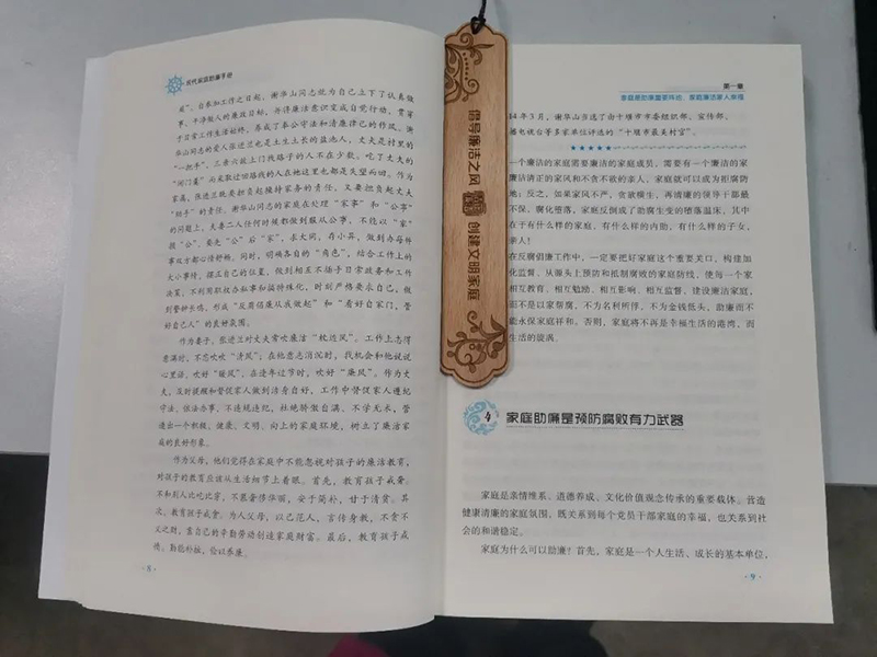 “小书签”传递“廉”精神。全州农合行将读书和廉政文化建设有机融合,组织广大干部员工家属开展廉政家风读书活动,并赠送廉洁书签。廉洁书签上印制“倡导廉洁之风 创建文明家庭”寄语,警醒全州农合行每一位干部员工恪守廉洁底线,以小书签传递“廉”精神,让员工及家属能时刻见廉、思廉,激励大家坚守“底线”,不越“红线”,为全州农合行改制化险工作提供积极向上的精神力量。