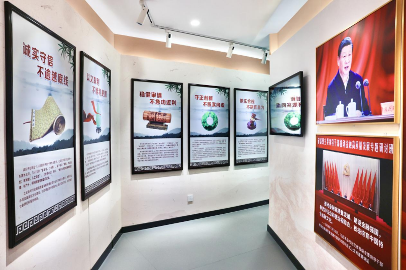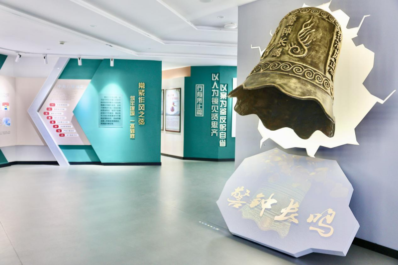 同时,该厅创新运用声光电投屏技术,设置“警钟造型”,投影展示金融系统落马官员忏悔视频,多层次增强现场科技感、体验感和交互感,警醒金融从业者以案为鉴、珍惜岗位、坚守底线。