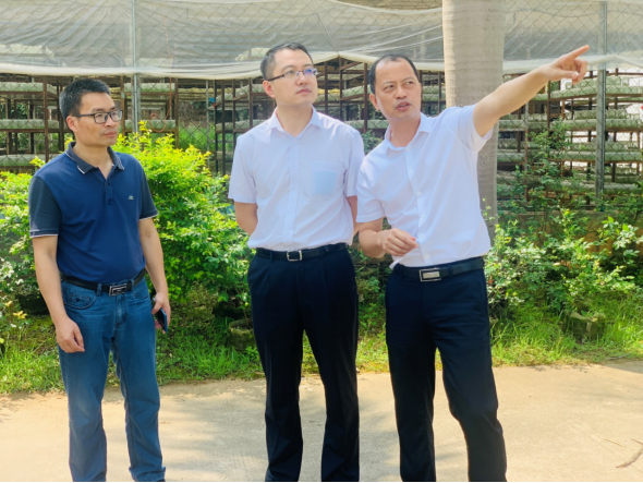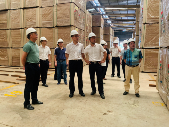 中国工商银行玉林分行副行长丁昌锋(主持全面工作、图左四)到广西国有博白林场了解复工复产情况,并就银行融资配套服务工作与企业进行深入交流。