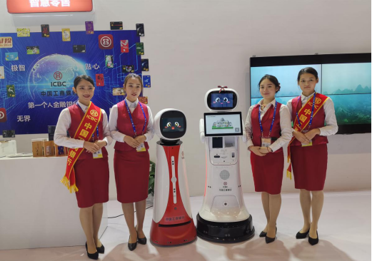 在工商银行展台,两个超萌可爱的智能机器人“工大壮”和“工小美”以俏皮风趣的对话吸引众多参展商驻足。这是一款专为金融领域的客户提供辅助或者替代服务人员进行专业服务的第五代智能终端产品,不仅可以实现自主迎宾、业务数据查询、简单业务办理,还具备与客户寒暄闲聊、生活咨询、娱乐互动、客户情绪安抚等多种功能。(来源:工商银行广西区分行)
