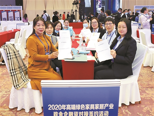 在自治区2020年高端绿色家具家居产业政金企融资对接签约活动中,邮储银行广西区分行与贵港、桂林、南宁家具家居行业企业现场签订授信服务协议。