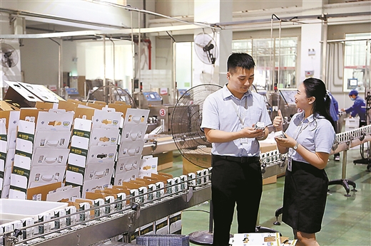 邮储银行广西区分行信贷客户经理在石埠乳业走访调查。