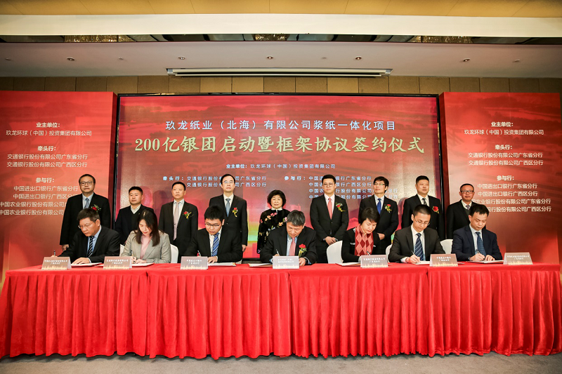12月20日,玖龙纸业(北海)有限公司北海浆纸一体化项目银团贷款框架协议签约仪式在南宁举行。