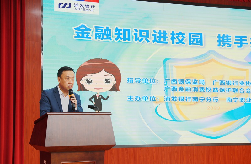 3月17日,由广西银保监局、广西银行业协会、广西金融消费权益保护联合会指导,浦发银行南宁分行、南宁职业技术学院传媒学院主办的“3·15”消费者权益保护教育宣传周活动之“金融知识进校园 携手护航助成长”主题宣教活动在南宁职业技术学院举行。