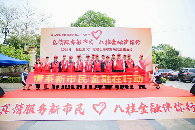 3月18日上午,一场以“真情服务新市民 八桂金融伴你行”为主题的“金桂星火”党建志愿服务活动在广西南宁市举行,拉开了新市民金融服务宣传活动的序幕。此次活动旨在弘扬“奉献、友爱、互助、进步”的志愿精神,深入学习宣传贯彻落实党的二十大精神和全国“两会”精神,以及银保监会有关加快推进新市民金融服务工作的决策部署,宣传新市民金融服务政策和特色金融服务,推动新市民概念在社会层面形成广泛共识,增强新市民的获得感、幸福感、安全感。