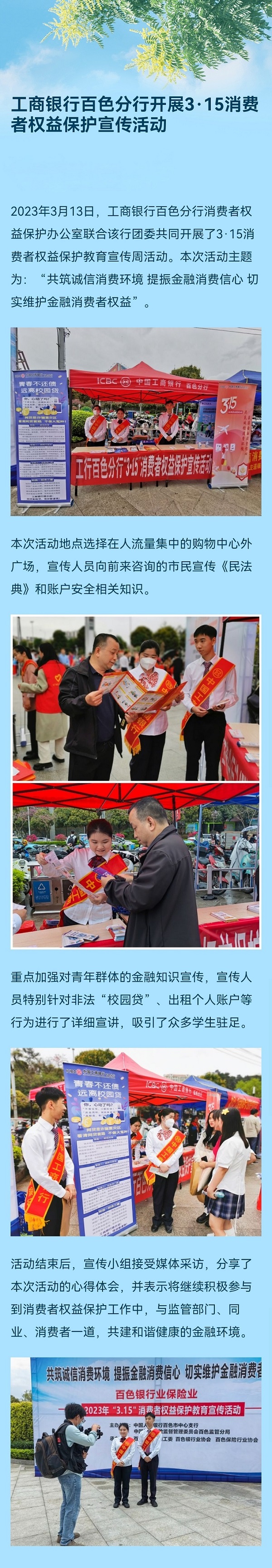 工商银行百色分行开展3·15消费者权益保护教育宣传周活动