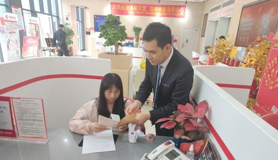 双拥路支行工作人员主动为来网点办理业务的客户发放消费者八大权益、新市民金融服务政策宣传折页并进行解读;进一步提升客户对双拥支行的满意度和认可度,拉近客户与客户经理间的距离,让温暖贴心的服务走进每一位客户的心里。