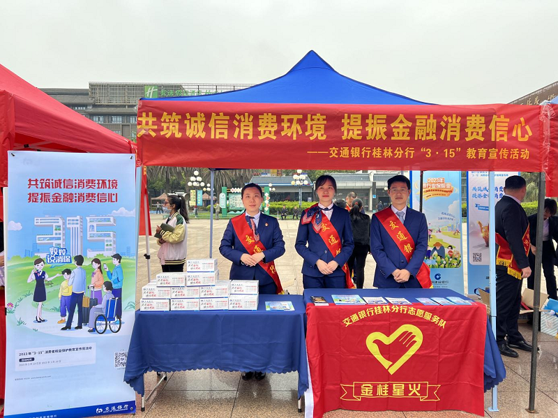 为进一步提升金融消费者风险责任意识、权利意识和风险管理能力,构建和谐的金融消费环境,3月,交通银行桂林分行积极响应监管机构号召,以“权利.责任.风险”为主题开展“3·15”消费者权益保护宣传活动。