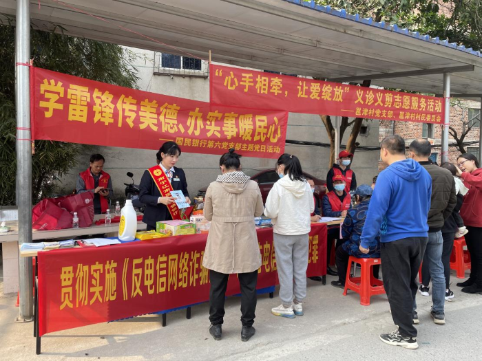 为弘扬雷锋精神,践行“奉献、友爱、互助、进步”的志愿服务精神及“有担当 讲奉献 懂感恩 乐分享”的企业价值观,三月,南宁江南国民村镇银行党总支部积极参与学雷锋活动,发挥青年主力军作用,参与志愿服务,开展主题“金融知识进社区”“义诊义剪”等志愿活动,引导员工带头弘扬新风正气,以实际行动书写新时代的雷锋故事,贡献国民人的青年力量。