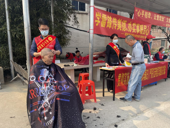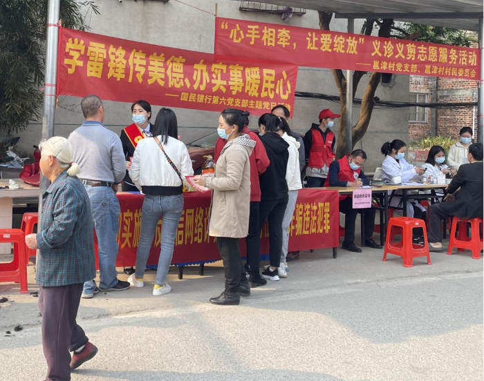 该行党支部联合邕津村党支部深入乡镇开展了“心手相牵,让爱绽放”义剪义诊志愿服务活动。