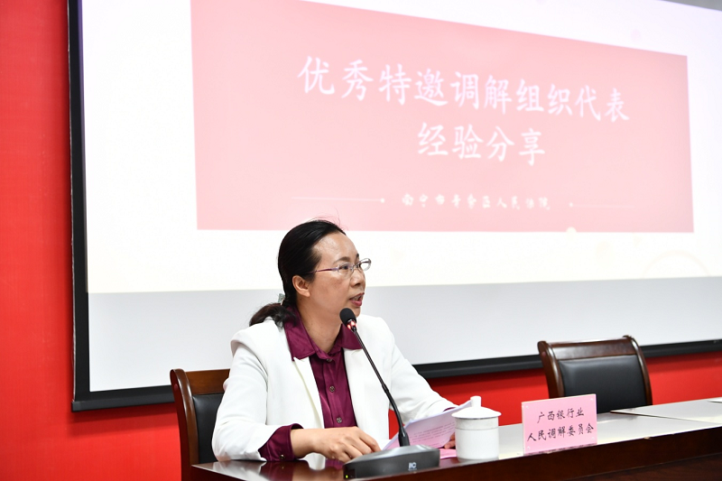 4月10日上午,南宁市青秀区人民法院召开2023年特邀调解多元解纷工作推进会。会上,青秀区人民法院党组成员、副院长钟凯详细介绍了青秀区人民法院2022年特邀调解多元解纷工作基本情况,广西银行业纠纷调解中心主任黄淑珍对调解工作作经验分享并对调解实务进行经验介绍。