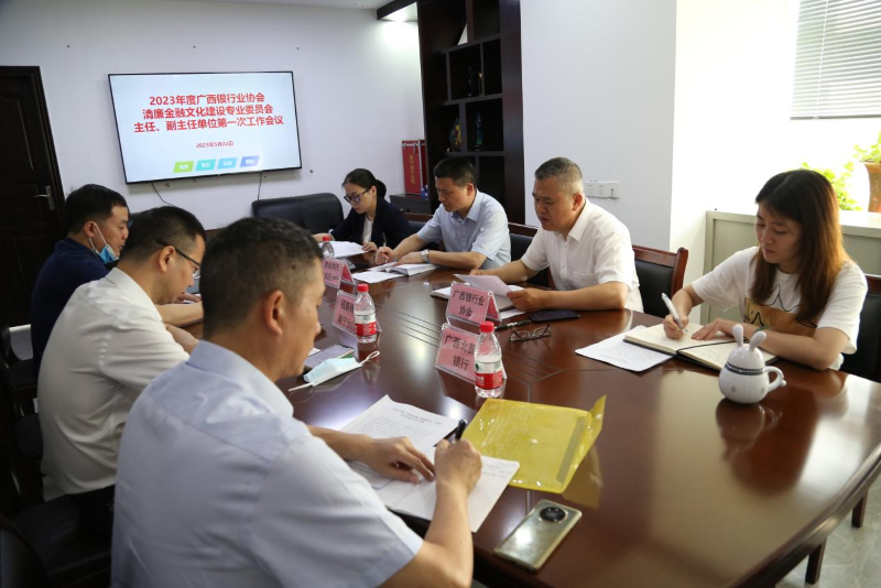 5月22日,广西银行业协会清廉金融文化建设专业委员会(以下“清廉委”)主任单位、副主任单位第一次工作会议在南宁召开。清廉委主任单位、副主任单位相关负责人、广西银行业协会宣传部全体人员参加会议。