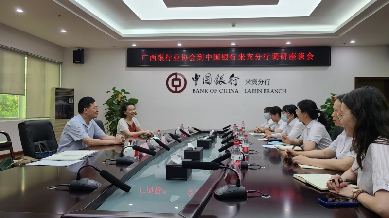 广西银行业协会以深入开展走访调研为着力点将扎实开展主题教育工作引向深入,2023年5月22日至23日,广西银保监局二级巡视员、广西银行业协会常务专职副会长滕仲斌率调研组深入未设立银行业协会的来宾市,就广西银行业协会如何更好履行职责,落实好“三个服务”开展专题调研。本次调研采取问卷调查、座谈交流、机构访谈、实地参访等方式进行。