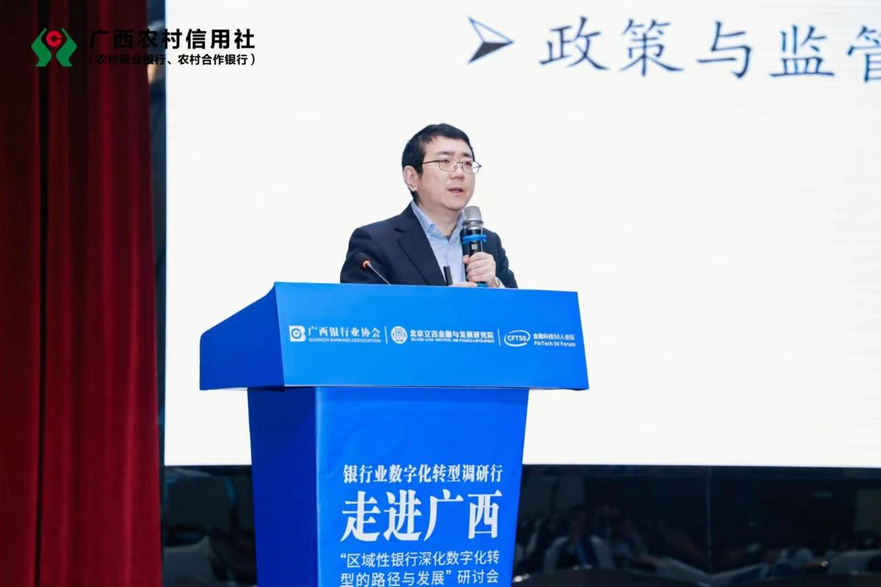 2024年1月11日至12日,由北京立言金融与发展研究院与金融科技50人论坛主办,国家金融监督管理总局广西监管局、广西银行业协会联合主办,广西农村信用社联合社、广西北部湾银行、腾讯云协办的“银行业数字化转型调研行——走进广西‘区域性银行深化数字化转型的路径与发展’研讨会”,在“壮美广西”圆满落地。集两地智慧,助力银行业高质量发展。这是一次金融领域的“双城”双向奔赴的高峰论坛。来自全国的行业知名专家和广西辖区金融监管部门、各银行机构的领导嘉宾出席本次会议,会议由广西银行业协会副会长兼秘书长毛宁主持。