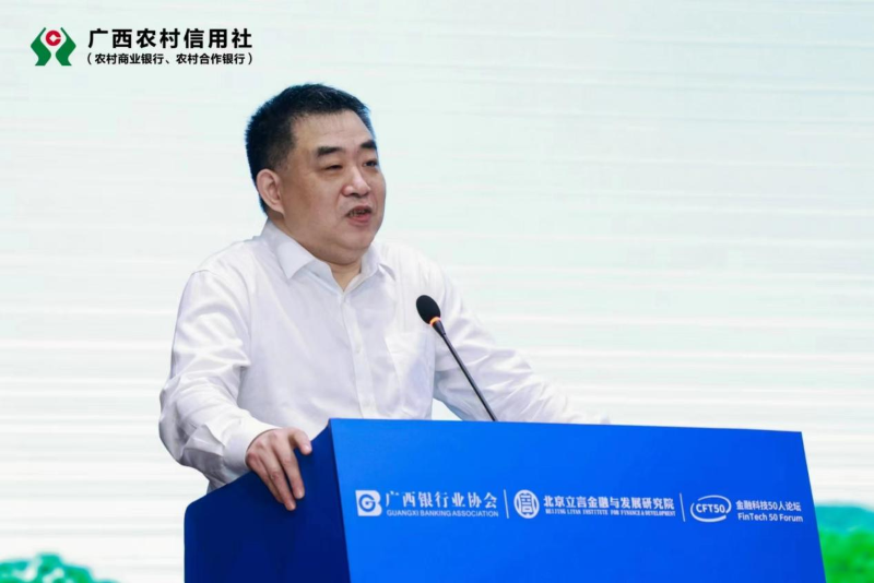 国家金融监督管理总局广西监管局二级巡视员、广西银行业协会常务专职副会长滕仲斌在致辞中谈到,2023年召开的中央金融工作会议明确将数字金融列为“五篇大文章”之一,凸显了数字金融在高质量服务中国式现代化建设、助力建设金融强国的重要性,银行业数字化转型已迎来加速发展的新阶段和关键期。结合本次研讨会主题,滕仲斌从三方面谈及对此的思考和认识。