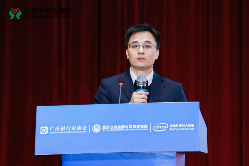 广西农村信用社联合社党委委员、副主任梁定基在《广西农信数字化转型实践与思考》的专题发言中,从数字化转型实践探索、数字化金融服务体系构建与应用场景以及未来展望三个方面进行阐述。