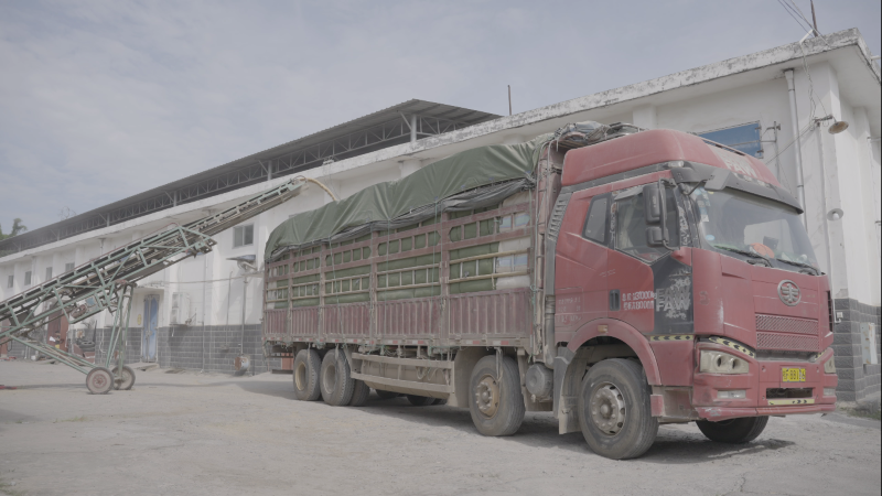 崇左市分行信贷支持粮食企业开展夏粮收购,图为粮食出库现场。