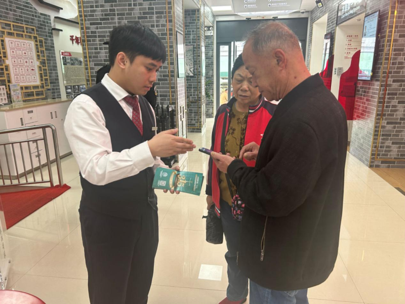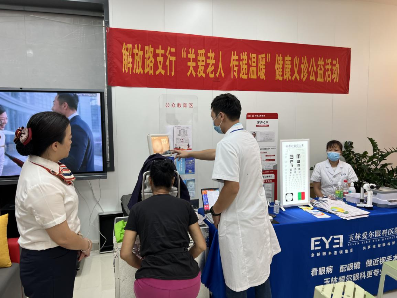 在服务创新中,对老年客户进行一对一精准服务,随时为老年客户答疑解惑、近距离指导业务,根据客户的需要,对老年客户提供上门服务,解决客户行动不便的金融服务痛点。开设“爱心窗口”,为老年客户提供差异化,精准的服务内容,为遇到困难的老人及时提供帮助。辖内网点与当地知名眼科医院共同组建银医志愿联盟先锋队,定期为到店老年客户提供义诊筛查、健康讲堂、慢病预防、大病救助及配套金融产品服务权益供给,用实际行动为他们送去关爱和温暖。从大堂咨询、柜面服务到人文关怀,为老年客户提供一站式金融服务,让“银发网点”更有温度。