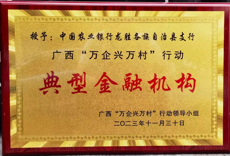 下一步,农行龙胜支行将以此次荣誉为契机,继续秉持服务“三农”、支持实体经济的初心和使命,不断加大金融创新力度,提升金融服务水平,为“万企兴万村”行动贡献更多的金融力量,助力当地经济社会高质量发展,奋力谱写中国式现代化广西篇章贡献国有银行力量!(来源:桂林银行业协会)