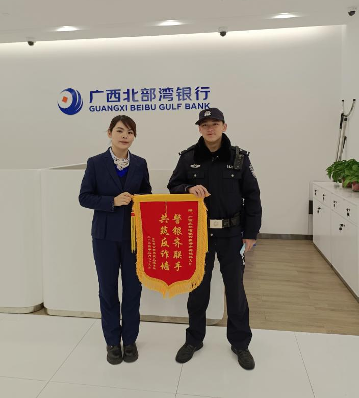 在贵港,广西北部湾银行荷城路支行严格落实“三必问”原则,成功拦截一起冒充熟人的诈骗,通过警银联动堵截涉诈资金18万元,获得贵港市公安局下辖城北派出所的高度认可。