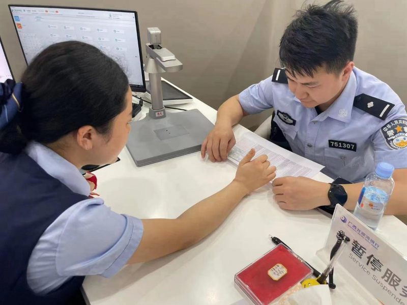 广西北部湾银行环江支行工作人员与反诈中心民警核实账户相关信息